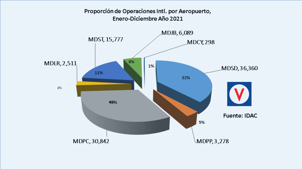 Según el más reciente informe del Instituto Dominicano de Aviación Civil (IDAC), el Aeropuerto Internacional de Punta Cana fue el de mayor movimiento de pasajeros del año 2021, en la República Dominicana.