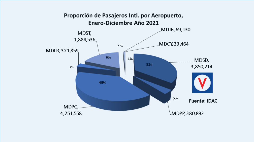 El país registró un incremento superior a 5.2 millones pasajeros movilizados por los aeropuertos durante el 2021, respecto al flujo de pasajeros del 2020, que fue de 5,477,333. Durante el 2021 se movieron por las terminales del país 10,781,653pasajeros, cifra que representa la recuperación del 75% de flujo de pasajeros que hubo en 2019.