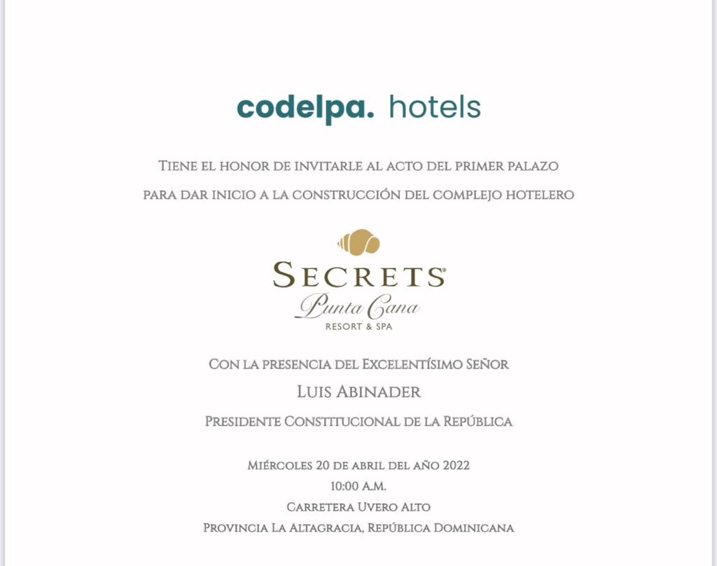 Acto del primer palazo para dar inicio a la construcción de complejo hotelero, este acto tendrá la presencia del presidente de la República Dominicana Luis Abinader.