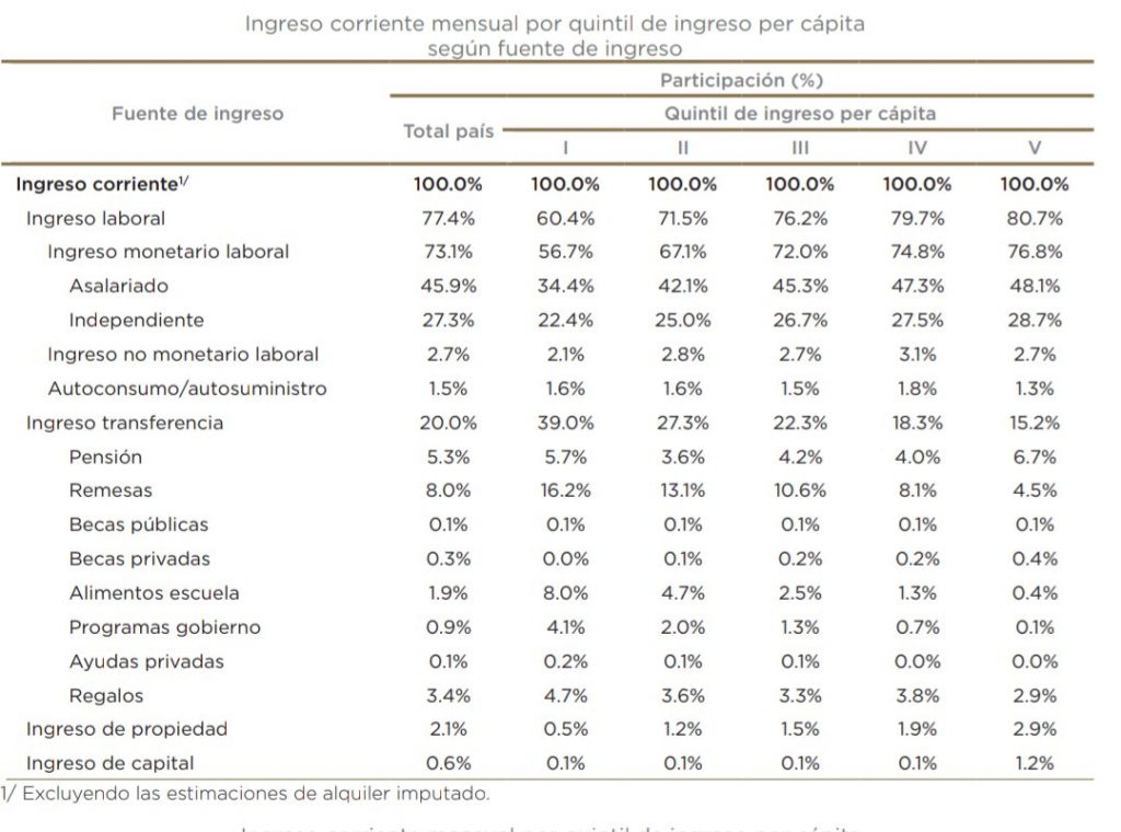 Primero, es un impuesto regresivo. Afecta más a las familias de bajos ingresos, pues en el Quintil 1 las remesas son 16.2% del total de ingresos. En Quintil 5 (los de mayor ingreso) es apenas 4.5%.