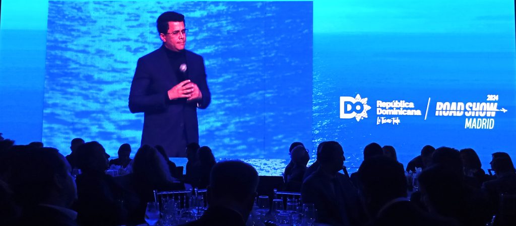 Fue claro en su objetivo de motivar a los tour operadores de España y Europa, a que se decidan por el destino dominicano. Presentó en las tres pantallas que casi envolvían la concurrencia, los reconocimientos que ganó el país por haber sido el primer pais en reabrir con motivo de la pandemia y que incluyó seguros de salud para los turistas, las medidas sanitarias implementadas en los hoteles y el proceso de regreso de los turistas a los hoteles dominicanos desde 2022 y 2022 en adelante.