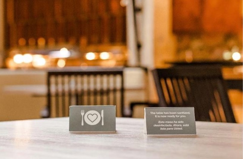 A la entrada, se toma la temperatura corporal por medio de un dispositivo digital infrarrojo, tras lo cual el huésped, al llegarle su turno, es llevado a la mesa indicada.