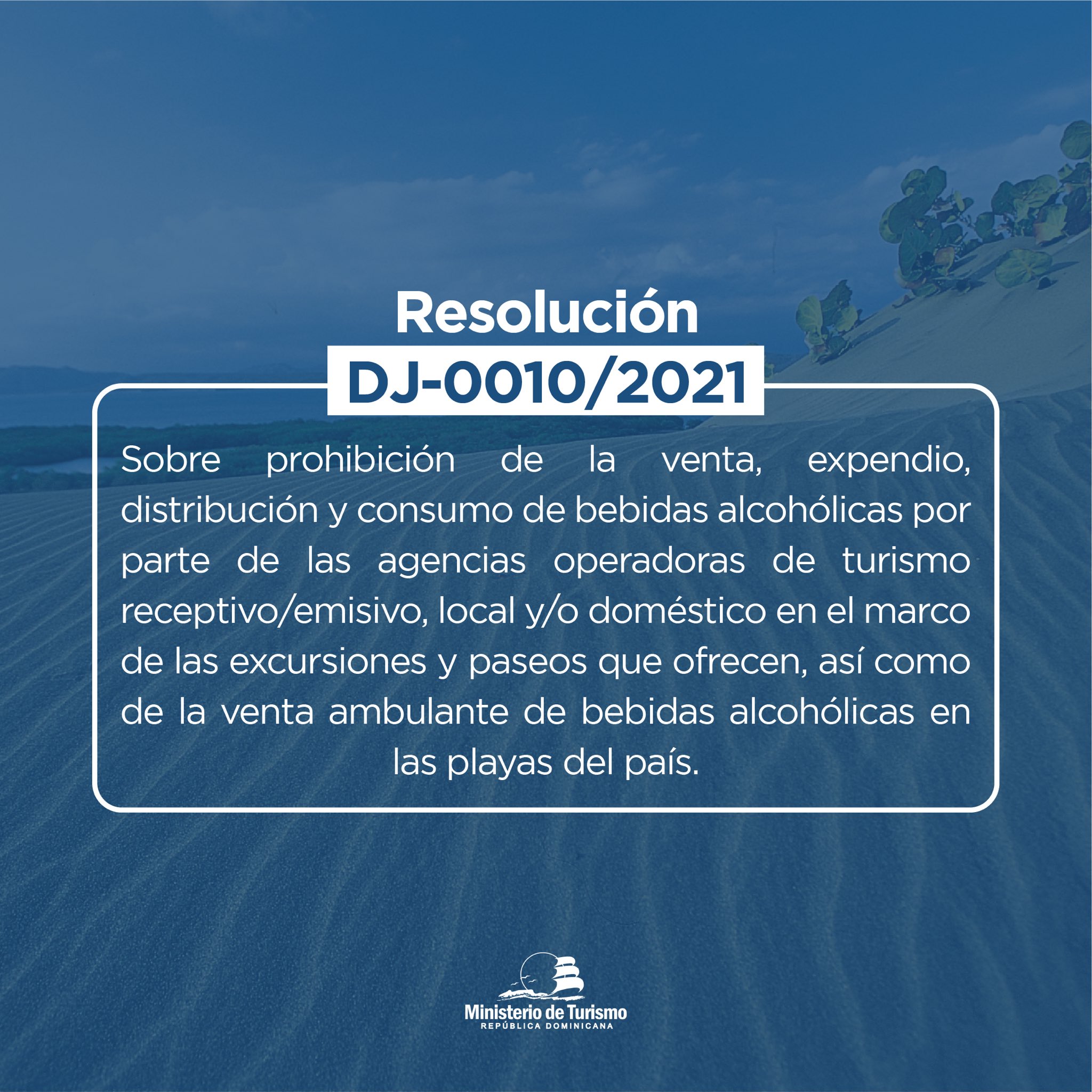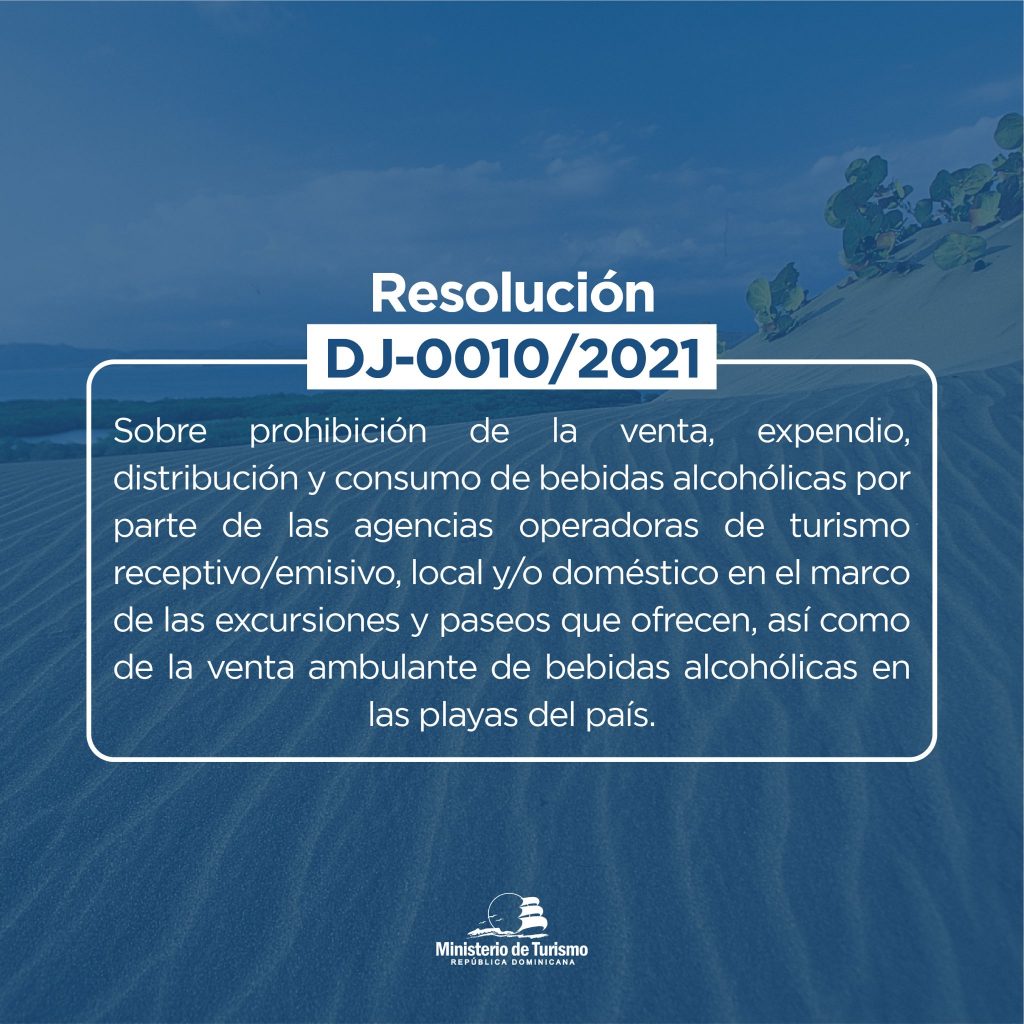 El ministro de turismo de la República Dominicana, David Collado, emitió la resolución DJ-0010/2021, donde se prohíbe la distribución de alcohol por parte de los tours operadores y la distribución ambulante en las playas.