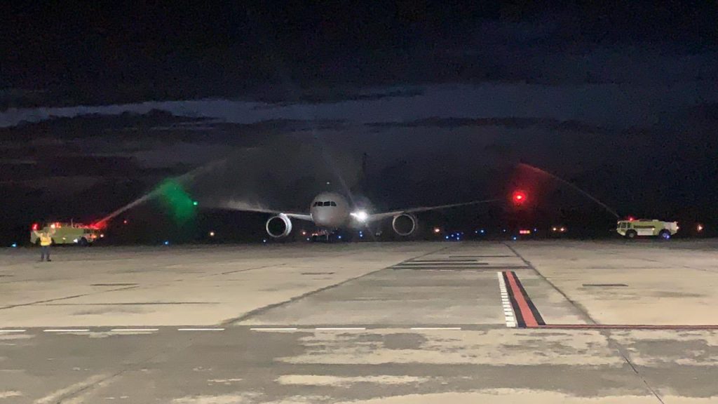El vuelo recibido en el Aeropuerto Internacional Presidente Juan Bosch en Samaná fue operado por Air Europa desde Madrid, España; aerolínea que próximamente inaugurará un vuelo directo a Samaná durante el verano.