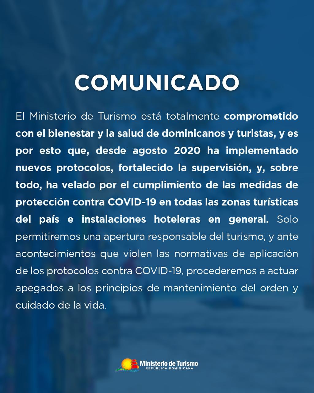 «Nuestro principal compromiso es con el bienestar y salud de nuestra gente y los turistas que nos visiten. Estamos apostando a una recuperación de turismo responsable y no permitiremos ningún incumplimiento que ponga en riesgo los logros que hemos alcanzado hasta el momento», dijo Collado.