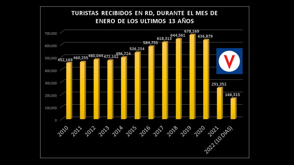 Ese total indica un ritmo de alrededor de 500 mil turistas a final de enero 2022, lo que de consumarse podría marcar un hito para el país, pues no rompería la marca, pero tomando en cuenta la pandemia agravada por la variante omicron, recientemente, 500 mil sería un gran número.