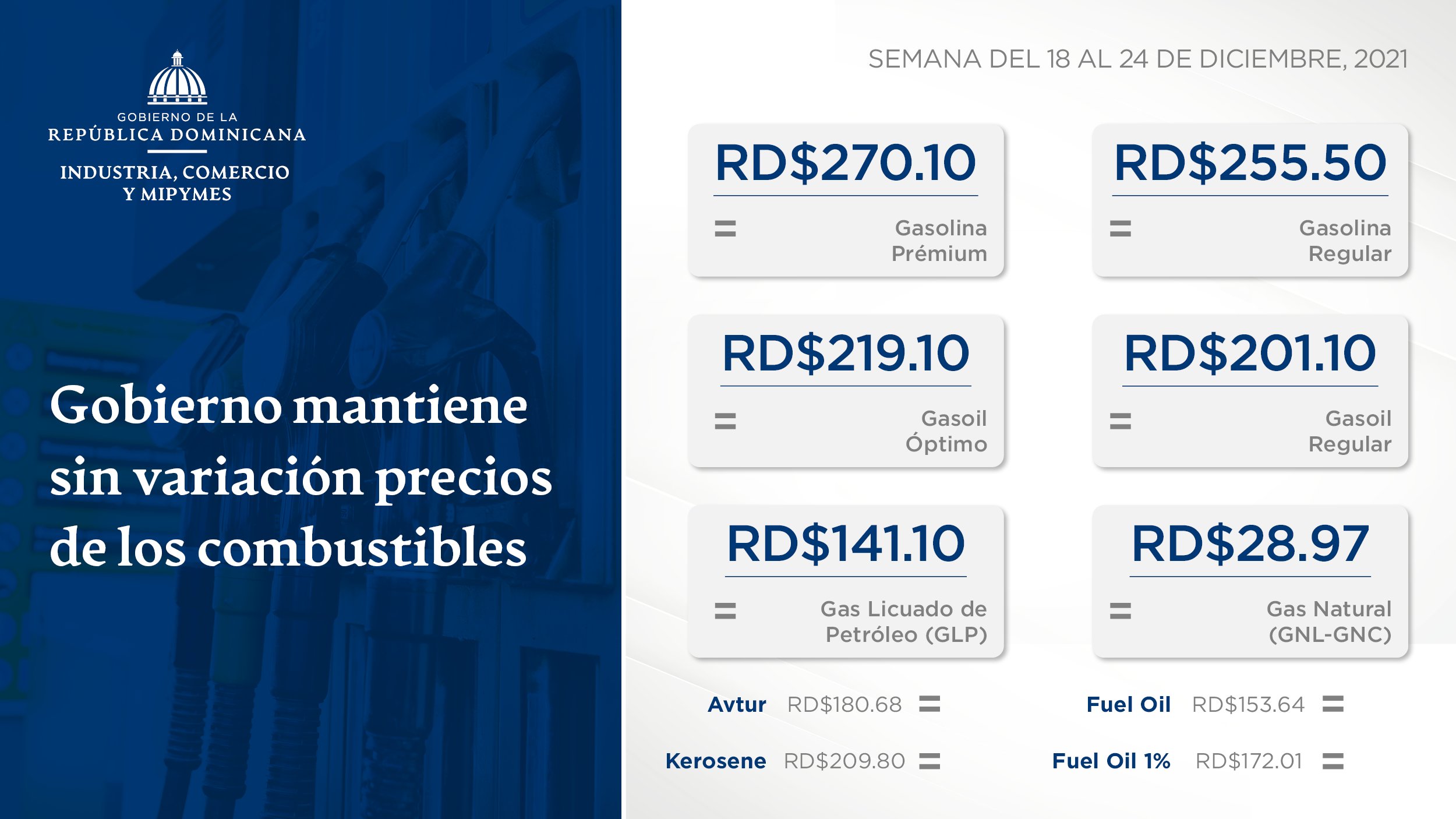 - Fuel oil 1%S RD$172.01 por galón mantiene su precio.
