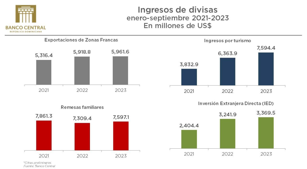 Valdez Albizu, también informó que, durante ese periodo, el país recibió remesas por US$7,597.1 millones para un aumento interanual de 3.9 %, un significativo aporte a la economía de la diáspora dominicana.