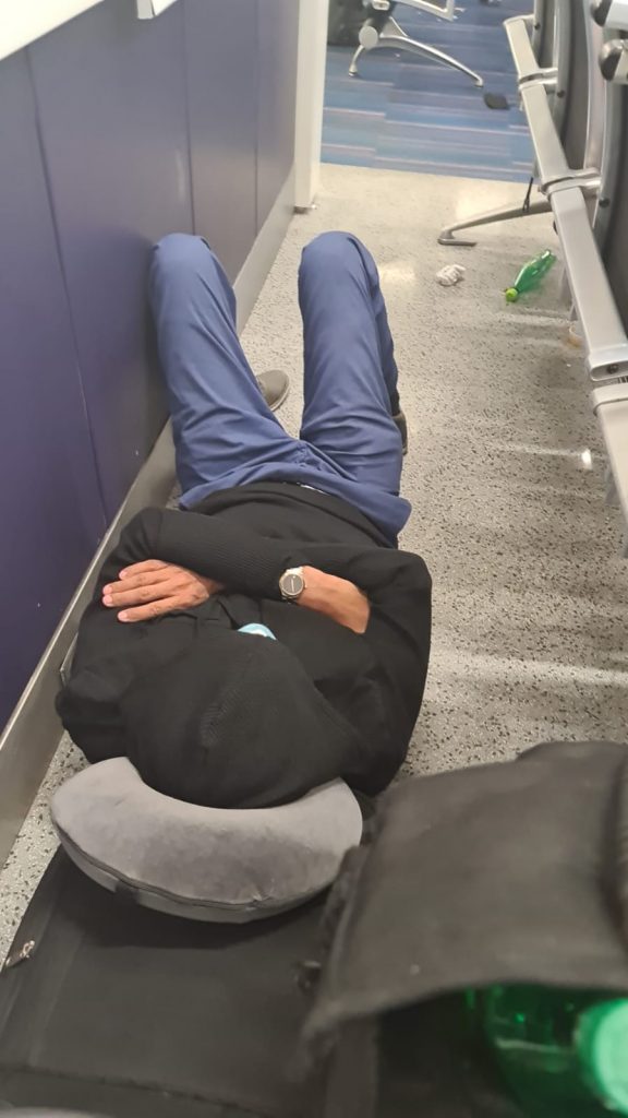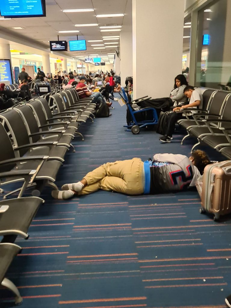 Uno de los videos narra como cambian un vuelo de las 10:30 pm para las 3:10 de la mañana. Niños, enfermos, envejecientes y sin lugar abierto para comer.